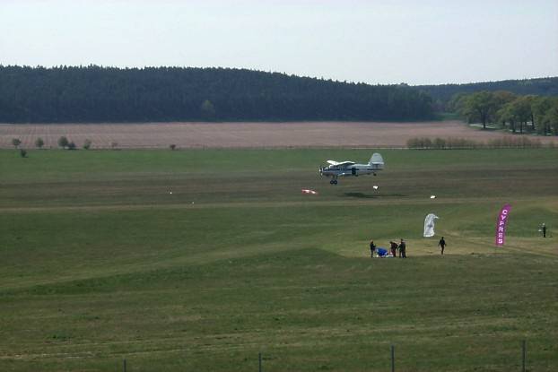 das Schleppseil ausgeklinkt und fällt an einem kleinen Fallschirm auf dem Flugfeld zu Boden. Das Motorflugzeug landet dann wieder hier, auf dem ältesten Flughafen der Welt. |