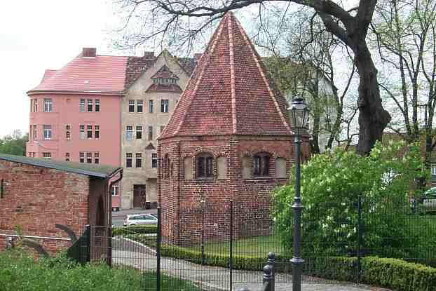 Stadtinsel auf dem bergigen nördlichen Havelufer und macht einen sehr wehrhaften Eindruck. |