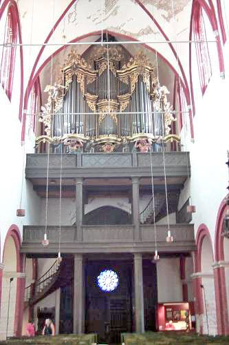 eingearbeitete Buntglas-Rosette ist hier gut zu erkennen.