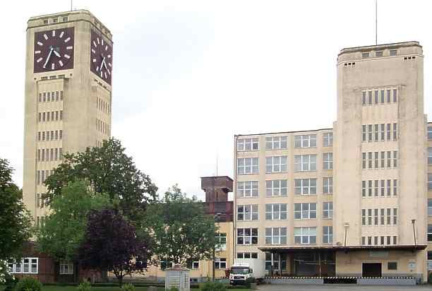 SINGER"- Nähmaschinenfabrik erbaut (Foto Aug. 2009). Über 3.000 Werktätige waren vor dem Zweiten Weltkrieg hier beschäftigt. Der Uhrenturm mit den