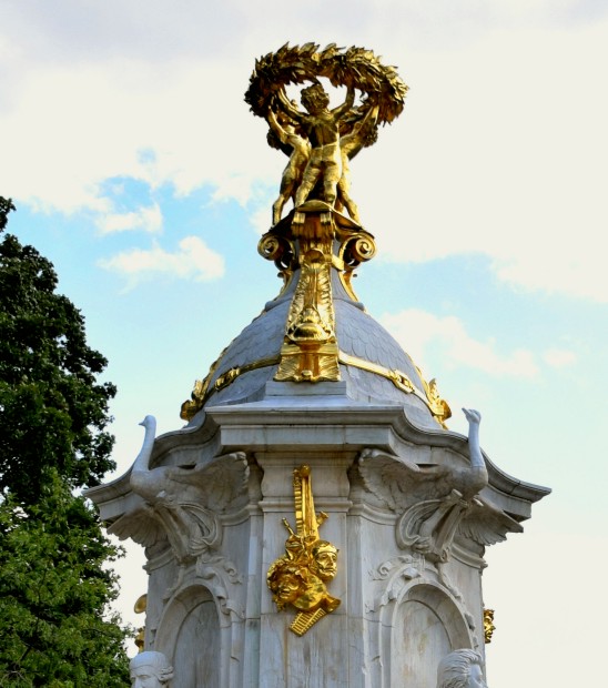 ![]() Berlins schönster Brunnen der "Neptunbrunnen" (Schlo0brunnen), wurde 1891 nach einem Entwurf Reinhold Begas (* 1831; † 1911) von Johannes Götz (* 1865; † 1934) gestaltet. Auch Erbauer des Schillerdenkmals vor dem Schauspielhaus am Gendarmenmarkt und des Bismarck-Nationaldenkmals am Großen Stern im Tiergarten. Mit seinem weitesten Durchmesser, des Brunnenbeckens aus roten polierten Granit, von 18 m und einer Höhe von ca. 10 m, zählt er zu den größten bildkünstlerischen Brunnenanlagen der Welt und gilt als Hauptwerk von Begas und Götz. Neptun wird unter anderem von vier weiblichen Figuren umringt, welche die 4 deutschen großen Ströme symbolisieren: den Rhein (mit Fischnetz und Weintrauben), die Elbe (mit Ähren und Früchten), Oder (mit Ziege und Fell) und Weichsel (mit Holzklötze - Symbol für Wälder) darstellen. Der Volksmund spricht auch von "den einzigen Berlinerinnen, die den Rand halten können". |
