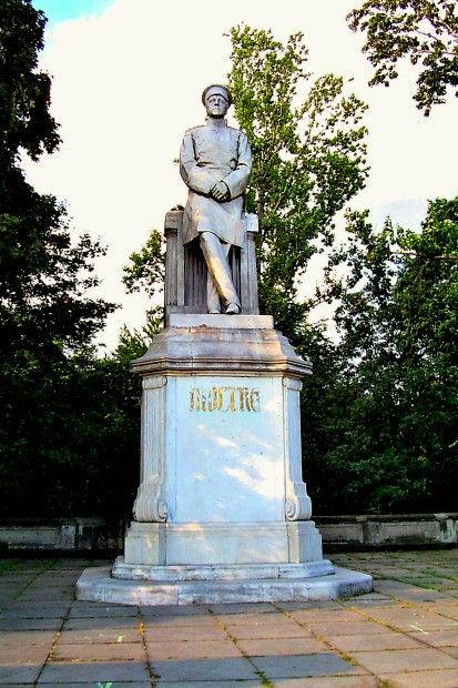 In der Grünanlage, auf dem Weg zum Torhaus der Zitadelle, wurde nach einem Original von "Lysipp" die Kopie der Bronzeskulptur des sitzenden "griechischen Kriegsgottes Ares" platziert. Diese stammt aus dem Jahr 1964, das Original stammte aus dem Jahr 1920. Auch Friedrich der Große hatte eine Marmorkopie dieser Skulptur im Eingangssaal seines Schlosses "Sans, Souci." aufgestellt. Die Statue stellt den griech. Kriegsgott Ares dar, auf einem Felsen sitzend, der seinen linken Fuß auf seinem Helm abgestellt und zu seiner Rechten seinen Schild an sich gelehnt hat. Die linke Hand hält das in der Scheide steckende Schwert, ein zusammengerafftes Gewand ist um die Hüfte geschlungen und mit dem anderen Ende über den linken Unterarm geschlagen. Zwischen den Füßen sitzt ein zum Gott emporblickender kleiner Eros, der eine Verbindung zu Aphrodite andeutet, wie sie zwischen der Göttin und dem Kriegsgott Ares bestand. **************************************************************************************************************** Lysippos - deutsch Lysipp (* ca. 400/390 v. Chr.; † Ende des 4. Jahrhunderts v. Chr.), war ein griechischer Bildhauer und Erzgießer, der vor allem in der 2. Hälfte des 4. Jahrhunderts v. Chr. tätig war. Lysipp war der bedeutendste Plastiker des 4. Jahrhunderts v. Chr. auf der Peloponnes, eine Halbinsel im Süden des griechischen Festlands. |