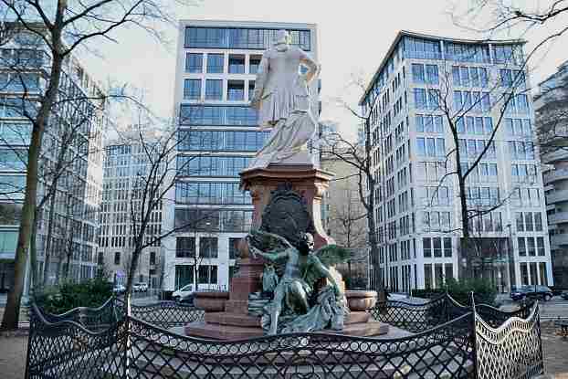 Rechts vor dem Berliner Abgeordnetenhaus steht das Denkmal