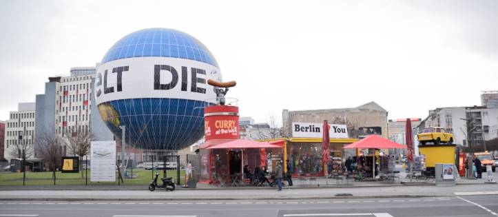 "Trabiworld". DDR-Symbole, bald mit historischem Wert, stehen hier für die ganze "Welt" bereit, zur "Safarifahrt" im wiedervereinten Berlin. |